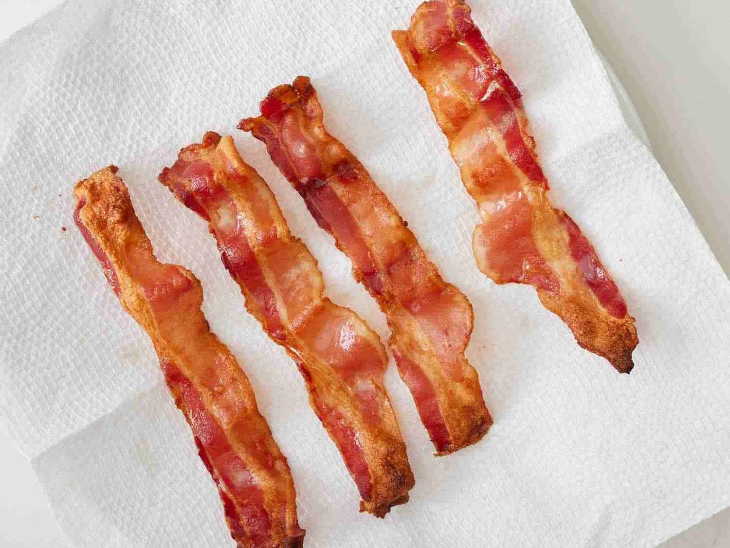 - Step 2:Cook bacon in a large, deep skillet over medium-high heat until evenly browned, about 10 minutes. Drain bacon on a paper towel-lined plate. Dotdash Meredith Food Studios