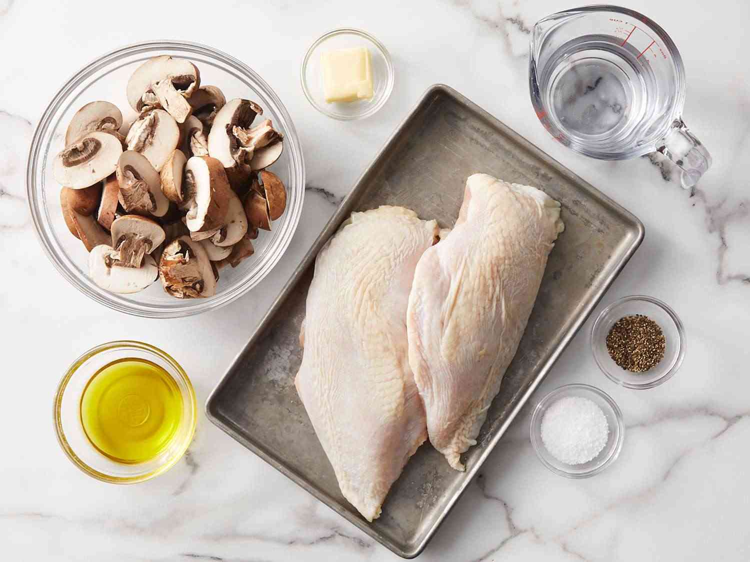 - Step 5:Turn chicken over; stir mushrooms with a pinch of salt into skillet. Increase heat to high; cook, stirring mushrooms occasionally, until mushrooms shrink slightly, about 5 minutes. Dotdash Meredith Food StudiosDotdash Meredith Food Studios